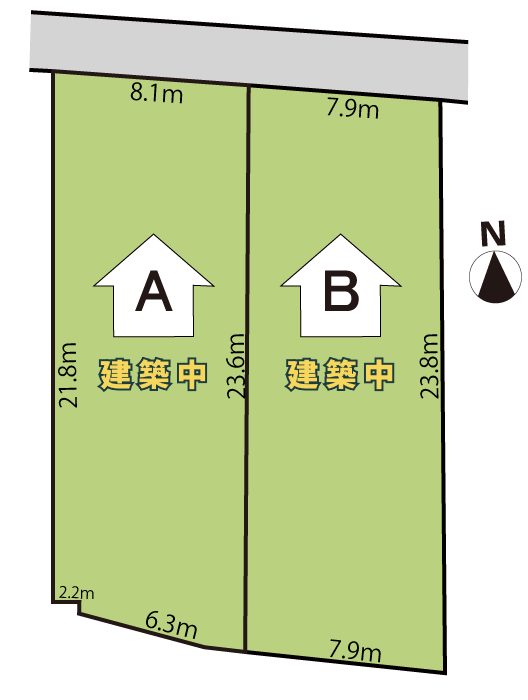 北側公道 幅員6.9m 間口8.1m